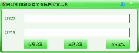 開(kāi)啟軟件,輸入IE網(wǎng)頁(yè)標(biāo)題和IE主頁(yè)地址,點(diǎn)擊標(biāo)題設(shè)置或主頁(yè)設(shè)置即可設(shè)置成功