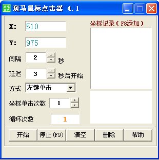 斑馬鼠標(biāo)點擊器可以模擬手工點擊鼠標(biāo)的動作,是一個很有用的綠色、免費的小軟件,如果你在平時的游戲或是工作中經(jīng)常需要大量點擊鼠標(biāo)左鍵或右鍵,如果你喜歡玩網(wǎng)絡(luò)游戲,RPG游戲,那么一定有大量點擊鼠標(biāo)的經(jīng)驗,非常浪費時間,浪費精力,消耗鼠標(biāo),這個小軟件可以解放你的手指啦!