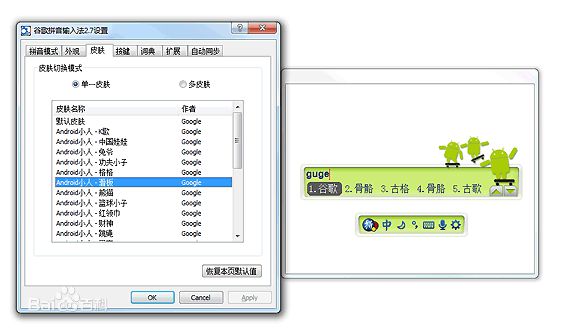 新增個(gè)性換膚功能,并精心設(shè)計(jì)制作20余款Google徽標(biāo)和Android風(fēng)格的個(gè)性皮膚。