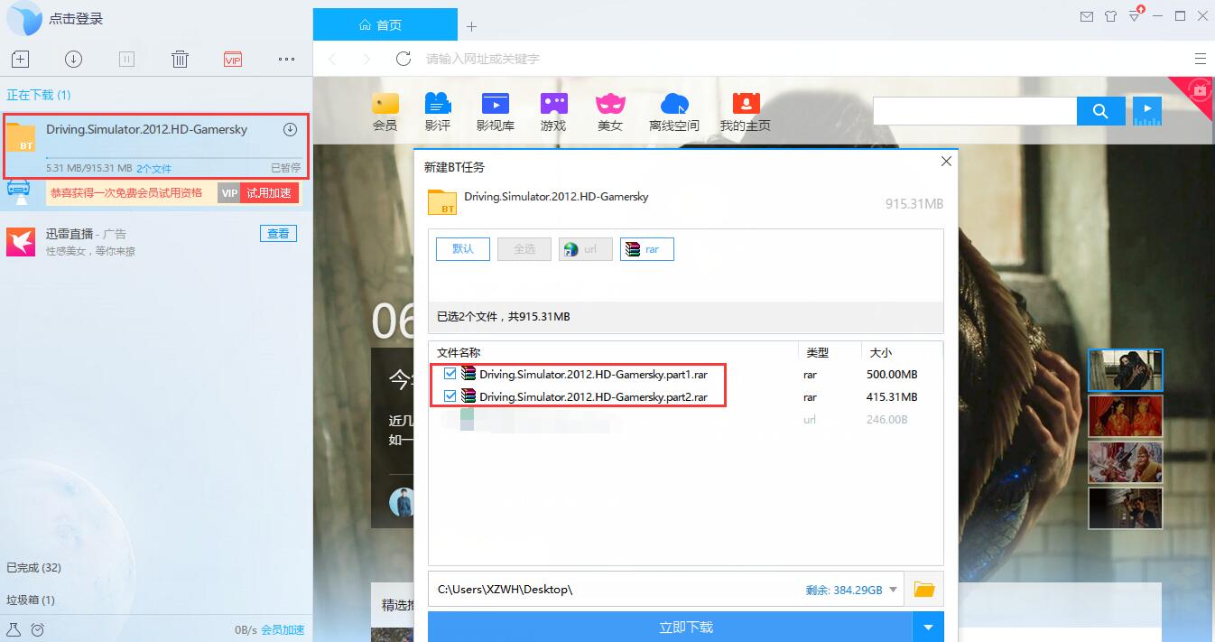 本次提供的模擬駕駛中文版為BT種子文件,BT種子文件實(shí)際大小只有幾K或幾百K的小文件,提供一種連接到其它電腦的一種下載方式。從本站下載種子文件后,需要使用迅雷打開文件進(jìn)行下載。1.首先要確定電腦上有安裝迅雷,如果沒有可先從本站下載 http://www.sygqzm.com/