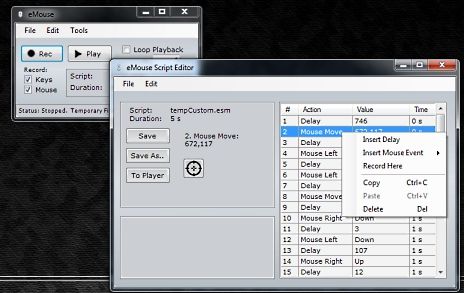 Emouse可用來記錄和回放的鍵盤和鼠標(biāo)輸入動(dòng)作,并保存為ESM腳本文件,可再次再次播放或使用編輯器進(jìn)行編輯。Emouse使用AutoIt的代碼合成工具,可輕松地創(chuàng)建和轉(zhuǎn)換AutoIt編寫的代碼