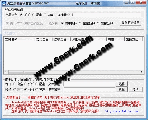 淘寶店鋪遷移總管 V2009.0.1.7 簡(jiǎn)體中文綠色免費(fèi)版 淘寶店鋪遷移總管 V2009.0.1.7 簡(jiǎn)體中文綠色免費(fèi)版