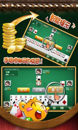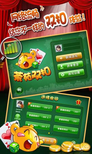 游戲規(guī)則上茶苑千變雙扣游戲取材自浙江溫州地區(qū)的雙扣玩法,游戲打兩副牌,對(duì)家兩人為一隊(duì)一隊(duì)的兩人要相互配合盡快將手中的牌先出完千變雙扣正副司令可做任意牌,牌型更豐富,游戲變化更多