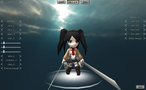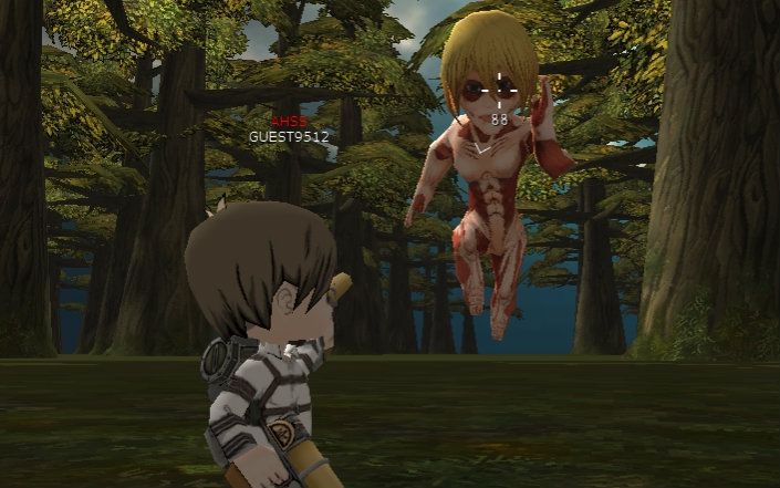 ◆阿爾敏(ARMIN)——賣萌,CD:5s,施法時間:2s(效果是讓巨人大笑約2.5s,對爬行種和BOSS還有正在攻擊的巨人不能造成效果)