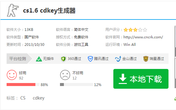 cs1.6 cdkey生成器使用說(shuō)明:反恐精英1.6cdkey生成器是專門針對(duì)cs1.6游戲而研發(fā)的一款自動(dòng)生成游戲序列號(hào)的小程序