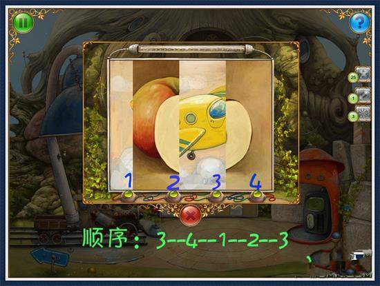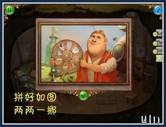 10、到三樓,在相框放入25個(gè)帶碎片的小瓶,拼圖游戲(圖3)撿起鑰匙,打開(kāi)地上的箱子,拿走扳手、2個(gè)拼圖片、1個(gè)燈泡。