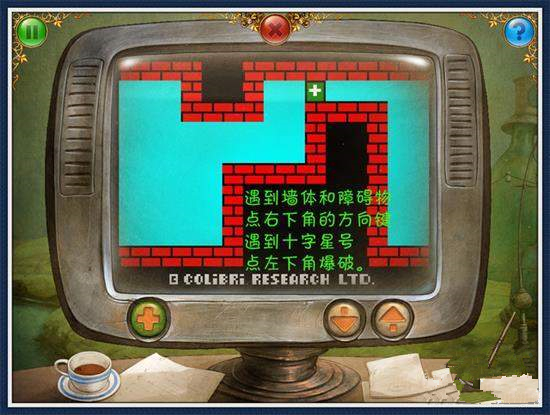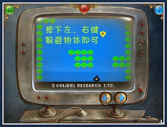 14、左走2步,放入操縱桿,開(kāi)始謎題(圖13).看電視機(jī),開(kāi)始游戲(圖14)拿走紅色三角按鈕。