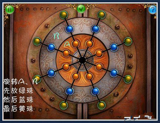 10、上來(lái)左行一步,找到6個(gè)小球。放入閥門開(kāi)始謎題(圖12)點(diǎn)擊上方燈閃處。找到1個(gè)操縱桿