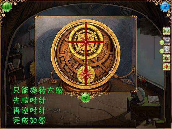 5、回去上樓,找到6個(gè)拼圖。點(diǎn)擊羅盤和機(jī)器。找到1個(gè)旋鈕。