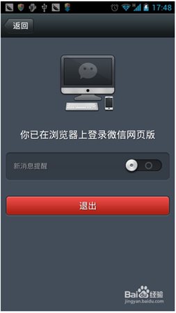 6、或者是在電腦上面的網(wǎng)頁(yè)版微信點(diǎn)擊退出也可以??!
