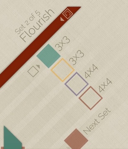很奇妙是不是?不僅如此,帶點(diǎn)扁平化味道的關(guān)卡設(shè)計(jì)也是暗藏玄妙,正確視角應(yīng)該是拿著設(shè)備,不偏不倚,但實(shí)際解題時(shí),因?yàn)榉綁K的正方形設(shè)計(jì),難免會(huì)不自覺地傾斜機(jī)器,讓映入眼簾的方塊端正起來。