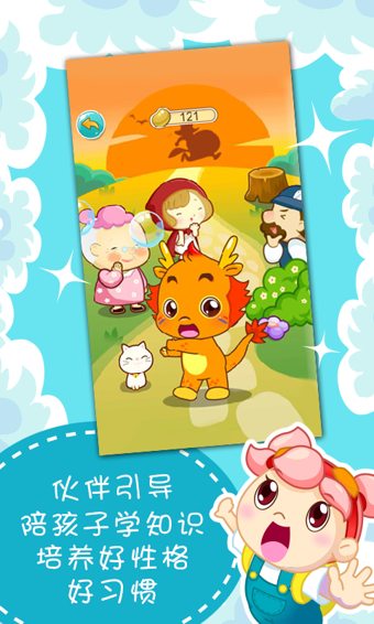 小伴龍,首款能叫出寶寶小名的幼兒應(yīng)用,能讓寶寶愛上吃飯、按時睡覺,還能和寶寶互動。聲控玩法讓寶寶開口念成語、背唐詩、說英語,身臨其境、穿越到經(jīng)典故事學(xué)知識,激發(fā)寶寶想象力。小伴龍完全免費,無廣告、無程序內(nèi)消費,方便使用,好媽媽手機必備哦!小伴龍進行了大量創(chuàng)新,包括喊孩子小名、“一邊喊、一邊學(xué)”等5項專利功能,以及大量原創(chuàng)的情景故事化的可互動內(nèi)容,小朋友可以和小伴龍一起幫助故事里的主人公,通過親歷故事,來培養(yǎng)寶寶的好品德、好性格。小伴龍讓孩子在玩中學(xué)知識,在快樂中健康成長。從現(xiàn)在開始孩子就擁有了一個神奇的小伙伴,一起學(xué)習(xí)、探索、成長,聽歌講故事,玩游戲等,小伴龍陪伴幼兒開始教育新時代。