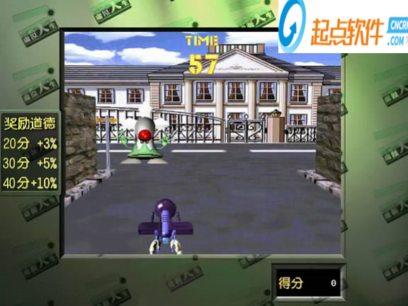 背景有只怪獸跑來跑去,玩家用拳槍去擊打,打的次數(shù)越多怪獸跑得越快,分數(shù)是按打中怪獸是一分,第二次打中是二分,第三次打中是三分,依此類推,如果打空會重新計分,要注意拳槍發(fā)出時會有一小段的緩沖,按空格鍵發(fā)射、按左右鍵來調整位置,(小技巧:當他跑的很快時在中間不斷發(fā)射,他就像篩子一樣被打了),獎勵道德值的小游戲。