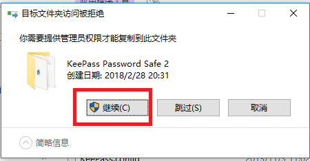 我們打開剛才安裝是配置的keepass路徑,然后把漢化文件拷貝到這個路徑下的languages目錄底下??截惖紺盤的時候會要求管理員權限,點擊繼續(xù)即可??截愅瓿梢院?,點擊打開的軟件界面的view選項,再點擊change languages。
