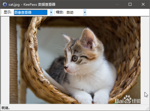附件內可以保存任何格式的文件,KeePass內置的查看器可以查看一般的文件如圖片、文本,但是一些別的文件則需要調用外部程序。