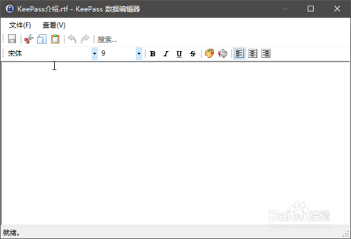 新建rtf格式的附件后,點擊 打開 ,在打開的 KeePass數據編輯器 里可以編輯rtf文件,編輯完成后點擊 保存 。