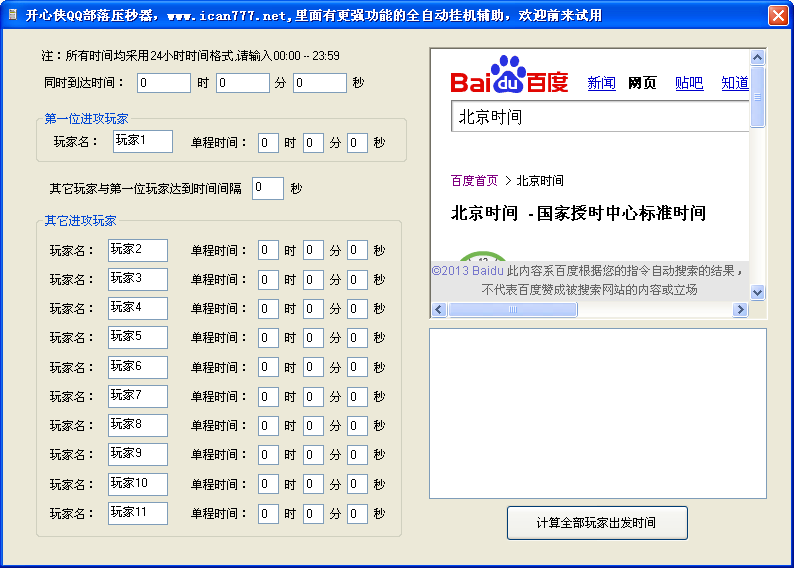打開(kāi)壓秒器后首先看到可以設(shè)置同時(shí)到達(dá)的時(shí)間,第一位進(jìn)攻的玩家的單程時(shí)間