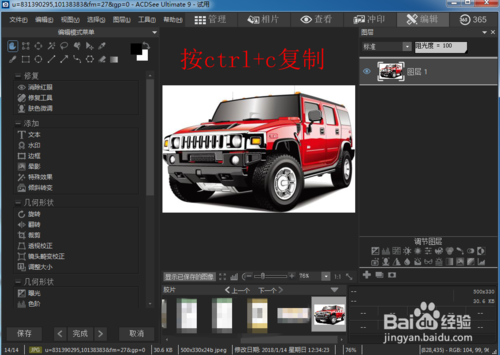 在“編輯”界面下,按ctrl+c,把第一張圖片先復制到剪切板上。