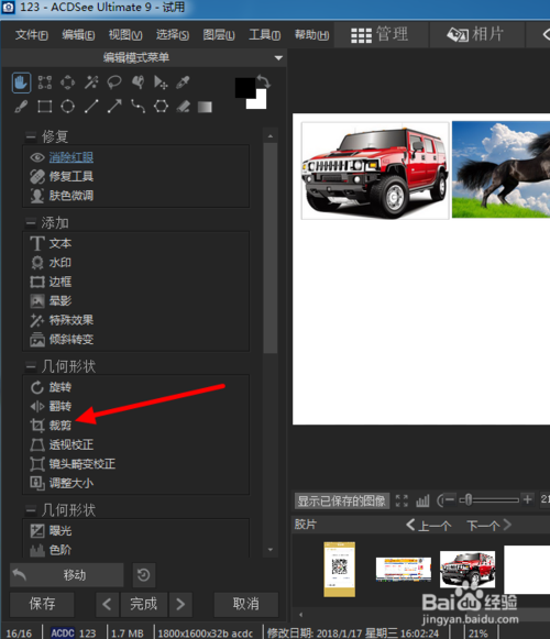調整好后,在軟件左側找到“幾何圖形”下的“裁剪”,并點擊。