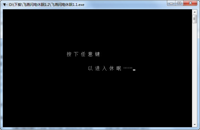 雙擊本軟件后,版本1.1需要按下鍵盤(pán)上的任意一個(gè)按鍵才能進(jìn)入休眠;版本1.2可直接進(jìn)入休眠,您可以根據(jù)您的愛(ài)好選擇使用哪一個(gè)版本。