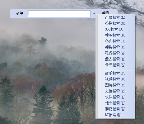 音樂(lè)搜索、視頻搜索、圖片搜索、文檔搜索、軟件搜索、地圖搜索、購(gòu)物搜索、BT搜索