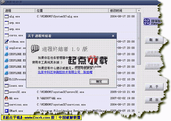 泛華進(jìn)程管理工具 V1.0 綠色版 “泛華進(jìn)程管理工具”是一款免費(fèi)軟件,提供了Windows“任務(wù)管理器”不具備的功能: