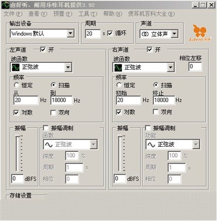 2、下面3個圖是常用的低中高音煲機的設(shè)置。一般采用立體聲正弦波