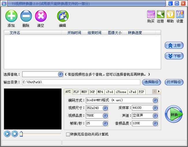 TS視頻轉(zhuǎn)換器是最專業(yè)并且易于使用的高清視頻轉(zhuǎn)換軟件,TS視頻轉(zhuǎn)換器支持將TS轉(zhuǎn)AVI,TS轉(zhuǎn)MP4,TS轉(zhuǎn)3GP,TS轉(zhuǎn)MPG等,轉(zhuǎn)換后的文件可以在您的iPad, iPod,iPhone,蘋果TV,PSP,PS3游戲機(jī),Zune播放器,Xbox,谷歌手機(jī),BlackBerry和其它的移動(dòng)電話里播放或刻錄成VCD、DVD光盤。