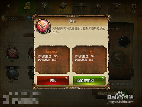 撕裂:同時使用兩種武器猛砍,提升武器所造成的砍傷,一開始可以使用的技能,很好用。