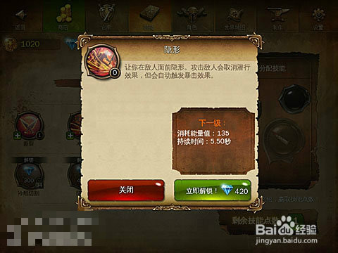 隱形:讓你在敵人面前隱形,攻擊敵人會取消潛行效果,但會自動觸發(fā)暴擊效果,神技之一,可以常用。