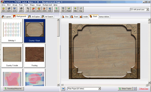 - 打印完美大小的"珠寶盒"封面。不會因為不合適的大小而浪費時間和油墨!使用CD Label Designer可幫助您以"所見即所得"的形式來設(shè)計完美滿足自己需要的封面。