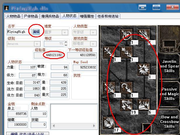 ,然后刪去80前面的數(shù)字即可。(注意,這里理論可修改的最高值為9999999,但是此修改不為游戲所承認,經我多次試驗,此處最大值不超過8100方可獲得游戲支持)。至于技能點值,一定要將光標移到數(shù)字0前面才能更改成最高為255(此數(shù)在游戲中只能顯示為99,但實際為255,大家可以根據(jù)數(shù)值去算一算)