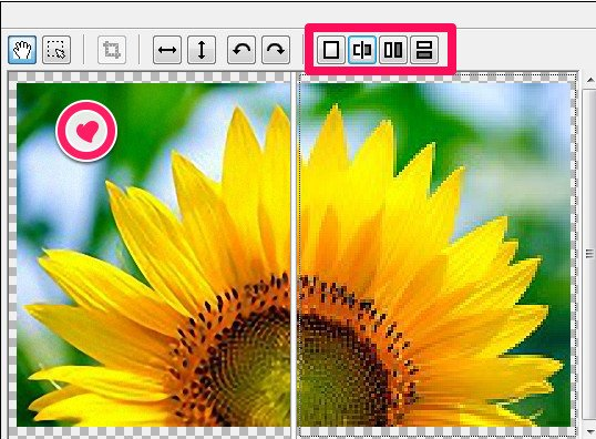在PhotoZoom的右側(cè)可以切換軟件的預(yù)覽方式,切換成對(duì)比方式,左側(cè)是PhotoZoom處理的效果,右側(cè)是圖片直接放大的效果。從這里可以直觀的看到軟件的處理效果非常好。