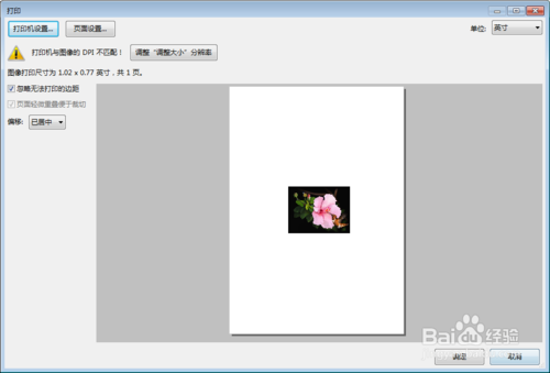 界面上的感嘆號(hào)提示打印機(jī)與圖像的DPI不匹配。出現(xiàn)這種情況,可以點(diǎn)擊調(diào)整“調(diào)整大小”分辨率。