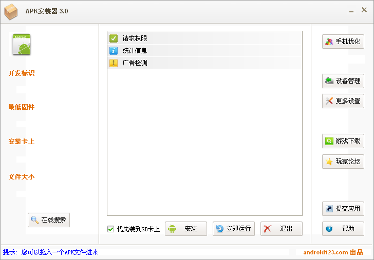 1、在apk安裝器的“設備管理”可以查看手機是否連接成功;2、還可以在“更多設置”里啟用apk文件關(guān)聯(lián),這樣只需連一次手機,裝軟件更方便;