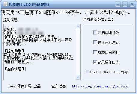 鼠標(biāo)控制助手是安卓平臺上實(shí)現(xiàn)手機(jī)控制電腦的工具,鼠標(biāo)控制軟件操作簡單實(shí)用方便,集合了一些常用的功能,通過控制助手你就可以實(shí)現(xiàn)手機(jī)控制電腦、有了它你可以控制自己的電腦關(guān)機(jī)、待機(jī)、重啟、鎖定電腦屏幕、鎖定鼠標(biāo)鍵盤、關(guān)閉顯示器、傳送文字、控制電腦鼠標(biāo)、運(yùn)行cmd命令、等操作。
