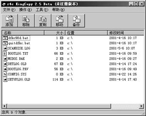 拷貝王KingCopy是一款應(yīng)用于復(fù)制與修復(fù)文件的實(shí)用工具。文件拷貝王有較高的文件讀取及糾錯(cuò)能力,能讀取軟盤上損壞的文件,并能對損壞的文件進(jìn)行修復(fù),恢復(fù)重要的數(shù)據(jù)。人工智能度較高,可結(jié)合到資源管理器的右鍵菜單,大大地簡化平常的文件復(fù)制操作。在拷貝過程中有更新文件及重命名文件的功能??商^難讀的文件。具有的文件斷點(diǎn)續(xù)拷功能。