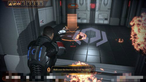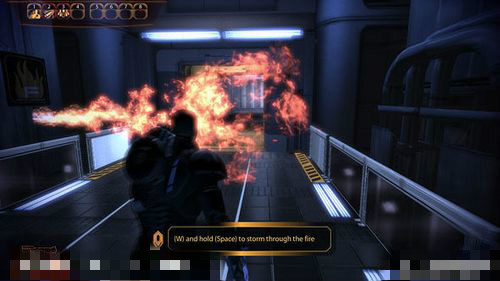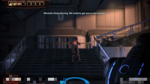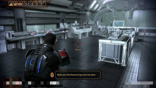 當你看完了靚妞,正準備說點啥的時候你發(fā)覺你所在的實驗室正遭受攻擊。沒辦法作為宇宙的維護者就這個命~~~某個不知名的勢力正準備消滅Shepard?;剡^神來的Shepard收到了靚妞的指令,依次完成3件事:從房間角上的箱子里拿把手槍,拿到后就可以出門和她匯合。此時她馬上命令你掩護自己,防止被爆炸波及。最后她要你拿起地上的彈藥,繼續(xù)冒險。
