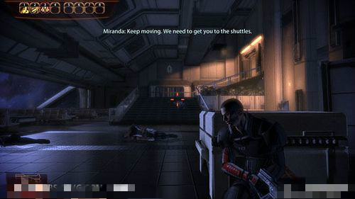 回頭前往不遠處開啟的門,相左縱身下回廊。半途中Jacob會聯(lián)系一名叫Wilson的艦上醫(yī)護人員,試圖得到點撤離路線的消息。接著會接連遇到4個敵人,同時Wilson正遭受敵人的襲擊。最后他留給了你們方位后便失去了聯(lián)系,Shepard和Jacob需要將他援救出來。