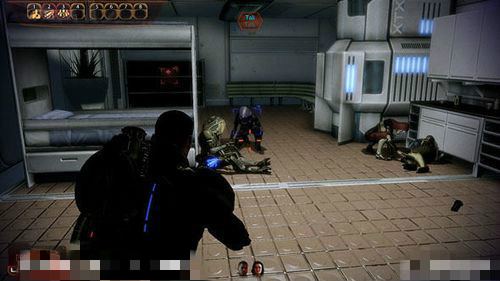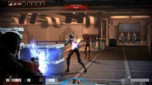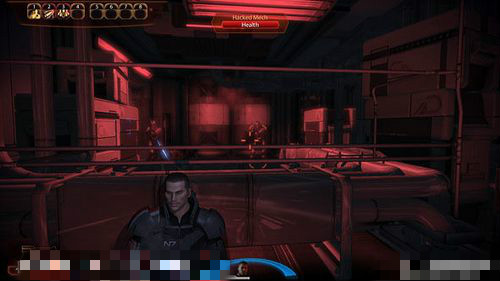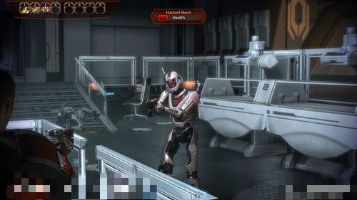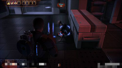 搜刮完后前往出現(xiàn)機器人的房間,這里沒有什么危險情況,大膽穿越前往另一個門。剛過那邊的大門劇情便被觸發(fā),一個老熟人出現(xiàn)。一代中的隊友Tali出現(xiàn),隨同她的還有個叫Prazza的伙伴。警惕的Prazza馬上舉槍瞄準你們,但Tali馬上認出了以前的戰(zhàn)友制止了沖突。隨后她便道出了同Prazza此行的目的是為了搜救一名叫做Veetor的伙伴。這里玩家可以選擇讓Tali等人自己去行動,但貌似這個選擇有點2,多兩把槍不是挺好。他們雖然不會直接加入你的編隊但是會陪同你一起戰(zhàn)斗。