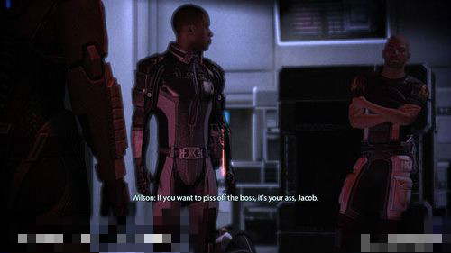 走出辦公室后前往另一扇門。這里Shepard遇到另一波敵人的阻擊,不過此次會得到點幫助。一個叫Jacob的生化異能者加入了你。Jacob可以使用Biotic能力,配合特能的使用可以讓戰(zhàn)斗更有威力。這里先隨便找個目標使用Jacob的Pull技能,剩下的干掉。大戰(zhàn)過后可以和Jacob對話,了解一下究竟發(fā)生了什么。順便提一下Jacob是第一個永久加入的隊友。