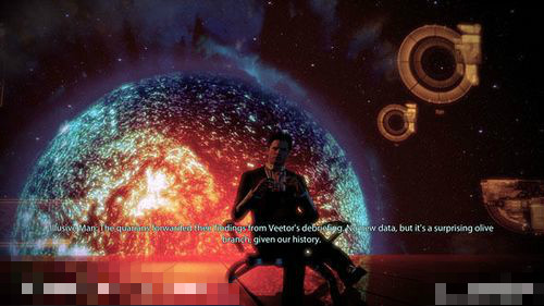 當你和Veetor的對話結束后,Tali會出現(xiàn)并且給你不同的路線選擇。你可以堅持帶著Veetor繼續(xù)冒險,或者就單單帶他的電腦,讓他和Tali等人同行(這里我選擇了后者)。隨后你會發(fā)現(xiàn)Shepard等人回到了飛船上,而且I-Man出現(xiàn)在面前,這里他提供了點收割者的消息,但貌似你的提問他預言又止貌似他隱藏了一點。你可以繼續(xù)詢問一點關于以前隊友的消息,但并不能得到任何有用的消息,而且他們貌似不能選擇。取而代之的是一些現(xiàn)役的可征召隊友資料,玩家們可以在以后的codex系統(tǒng)里面找到資料。