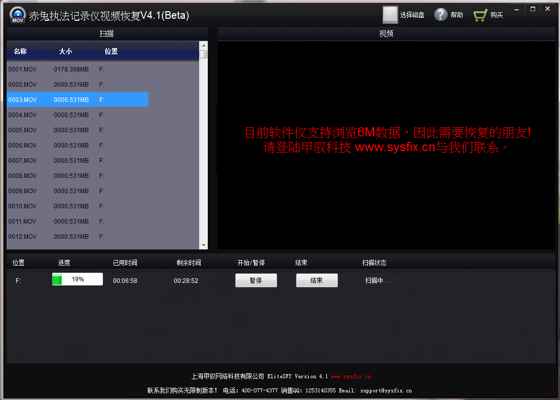 赤兔執(zhí)法記錄儀視頻恢復(fù)軟件是一款好用的視頻恢復(fù)工具,執(zhí)法記錄儀視頻恢復(fù)軟件專門用來恢復(fù)已丟失、損壞、誤刪除和病毒破壞等情況下的佳能高清數(shù)碼攝像機(jī)拍攝的MOV視頻文件。本軟件采用碎片處理技術(shù),可以最大程度確保MOV視頻文件的恢復(fù)。