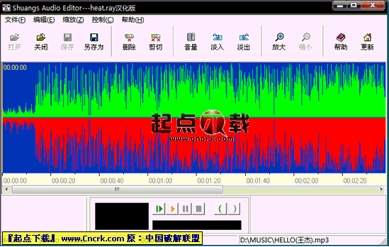Shuangs Audio Editor V2.2 漢化綠色特別版 一個(gè)完美制作音樂(lè)作品的音頻編輯工具,支持多種流行的音頻格式,支持聲音刪除,剪切,淡入,淡出,放大,縮小,等更多功能。