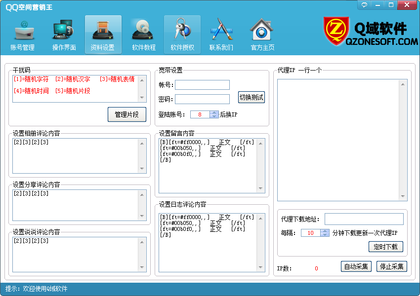 Q域QQ空間營銷王支持結(jié)合多款QQ空間營銷軟件的功能,一步到位,一條龍服務(wù),訪客留痕,日志留痕,相冊留痕,日志評論,相冊評論,說說評論,留言。