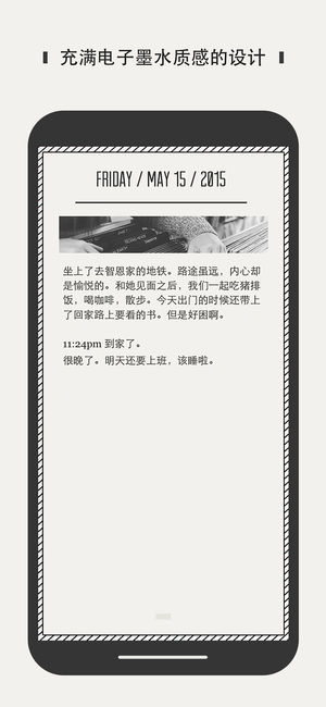 Daygram是一款充滿(mǎn)電子墨水質(zhì)感的日記應(yīng)用。界面設(shè)計(jì)極簡(jiǎn)主義,一日一句,記錄日常生活,有助于養(yǎng)成每天寫(xiě)日記的習(xí)慣?;仡櫧裉?,記錄今天,感受今天,期望明天。