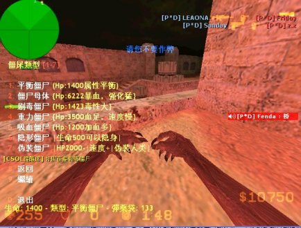 死后無法復(fù)活,T可以安裝C4把機(jī)密資料炸毀或同歸于盡!CT必須在盡快消滅所有T或解除C4!命懸一線??!我來 說兩下:爆頭插件他沒有放進(jìn)去, 僵尸被爆頭還是會復(fù)活,僵尸暴走很BT,不要小看 BOT 了。那是士氣插件顯示 有他自己的顯示方法!槍還是蠻多的,追擊者說時候 有點(diǎn)BT! 英雄之怒的流彈無限,流彈爆炸效果不過!很像官方的爆炸效果,右鍵直接就是流彈發(fā)射,炸死僵尸顯示的是 手雷殺敵.