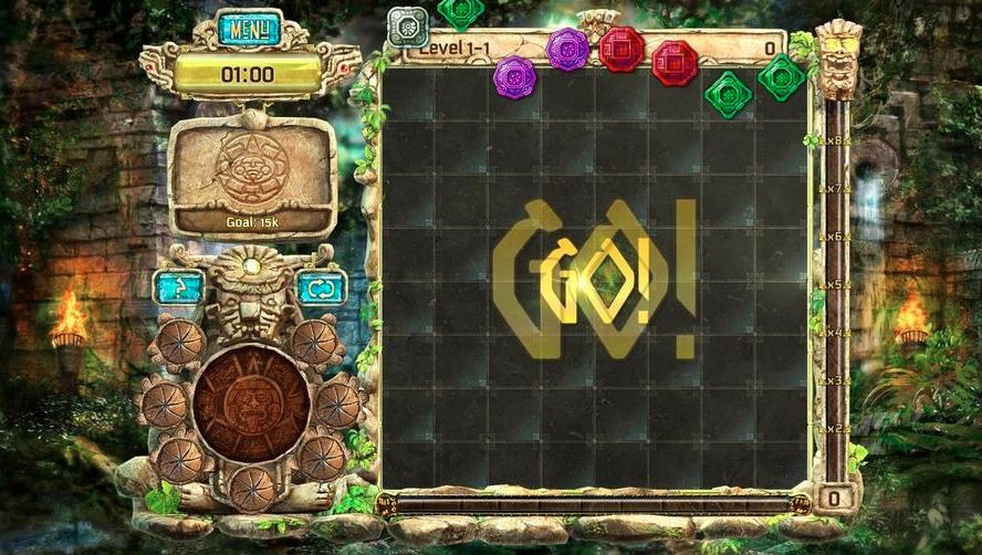 在規(guī)定的時(shí)間內(nèi),消除鑲有寶石的圖騰,達(dá)到指定的寶石數(shù)量便可過關(guān)。消除規(guī)則采用了常見的玩法,在出現(xiàn)新的道具時(shí),游戲中會(huì)有提示和說明來指導(dǎo)玩家使用。