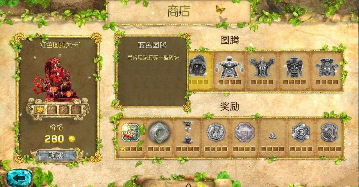 在每關(guān)結(jié)束后,會(huì)出現(xiàn)商店畫面,在這里可以利用金星(Golden Star)來購買,升級(jí)和出售道具或圖騰。