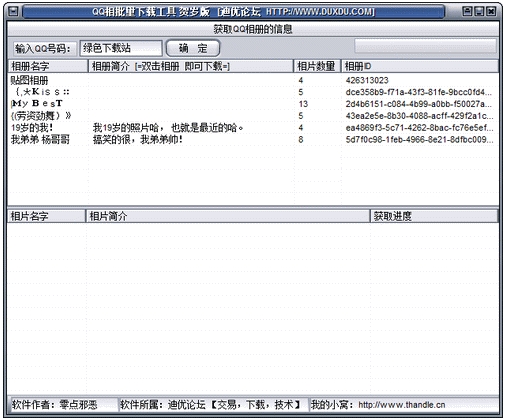 軟件應(yīng)用很簡單,輸入QQ號碼,然后確定 在要下載的相冊上雙擊即可!